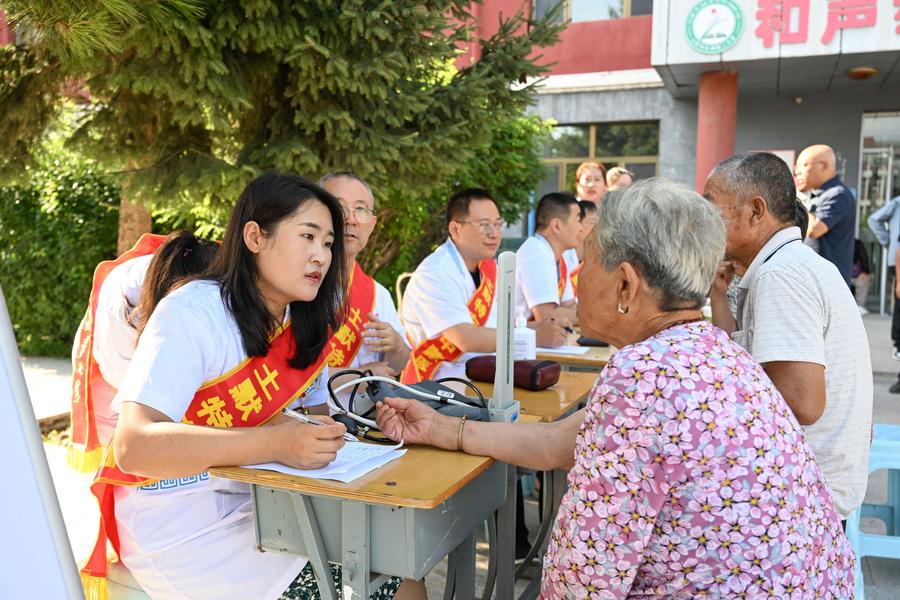 Imagen del 1 de agosto de 2025 de trabajadores médicos (i) ofreciendo servicios de consulta gratuitos en un refugio temporal, en la bandera izquierda de Tumd de Hohhot, en la región autónoma de Mongolia Interior, en el norte de China.…