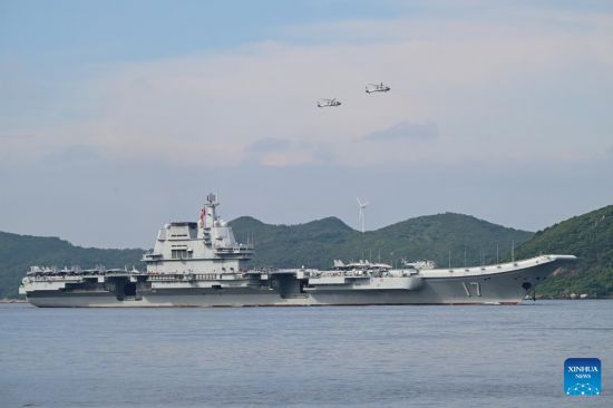 HONG KONG, 3 julio, 2025 (Xinhua) -- El portaaviones Shandong navega en aguas de Hong Kong, en el sur de China, el 3 de julio de 2025.…