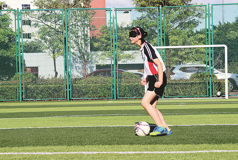 Una integrante del equipo de fútbol de la Escuela para Invidentes de Fuzhou practica en la cancha de Fuzhou, provincia de Fujian.…