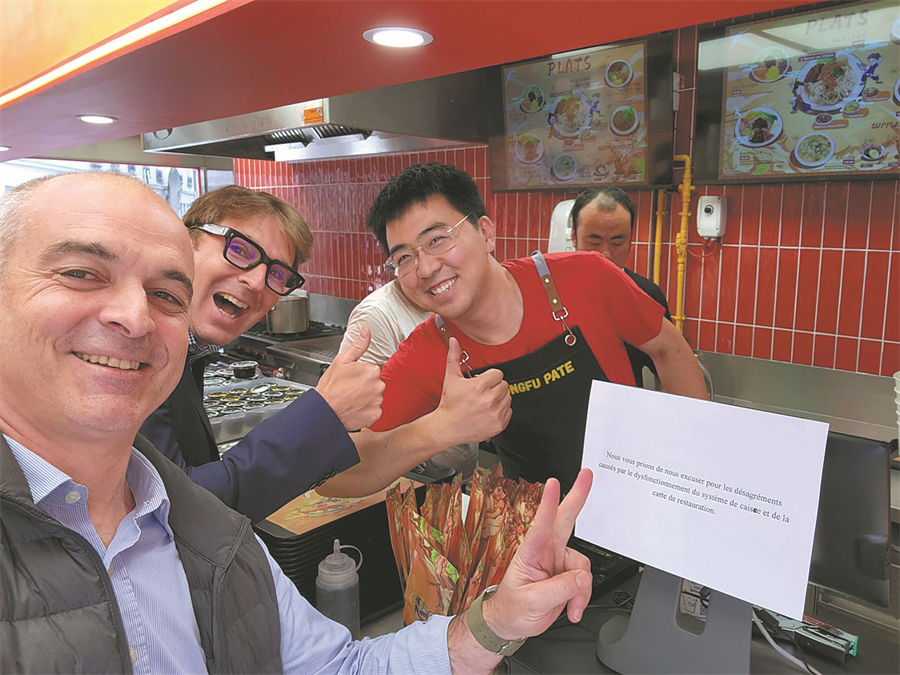 Guo Zhanglong, due?o del restaurante Kung Fu Daoxiaomian, cerca de Notre Dame en París, Francia, posa para una foto con sus invitados.…