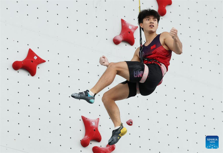 (PARIS2024) Wu Peng de China gana plata de velocidad masculino de escalada deportiva