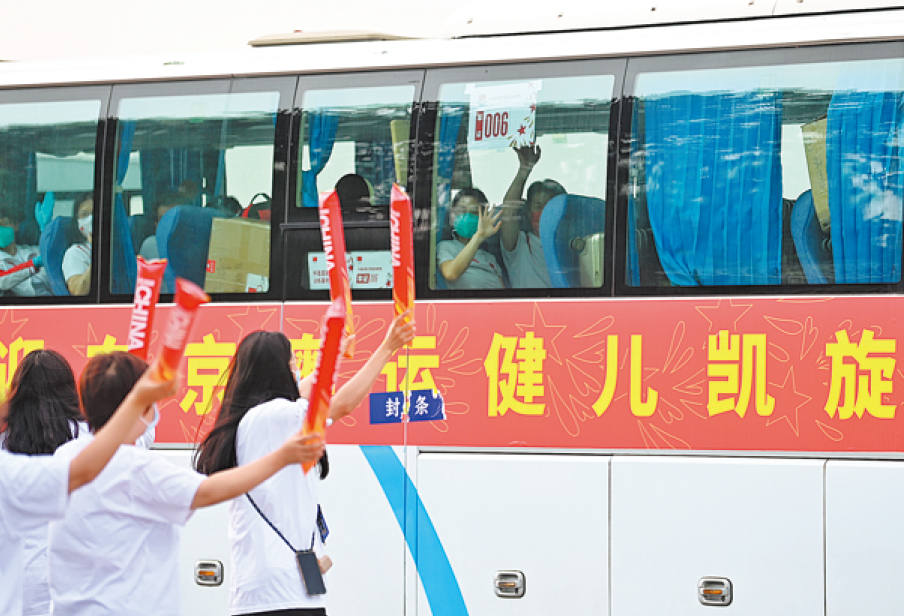 Delegación china arriba al Aeropuerto Internacional Capital de Beijing después de su excelente actuación en los Juegos Olímpicos de Tokio 2020.…