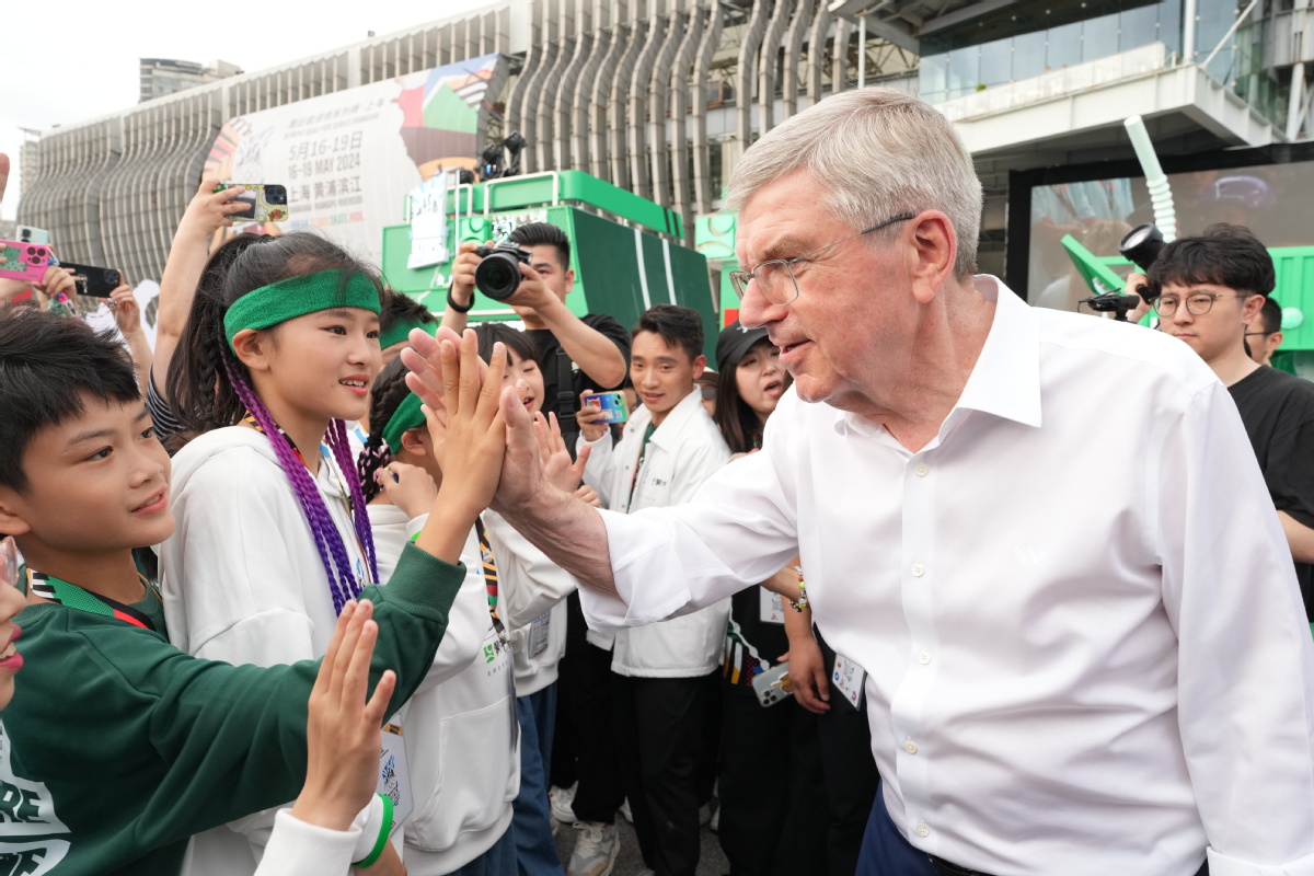 Presidente del COI visita stand de temática olímpica en Shanghai