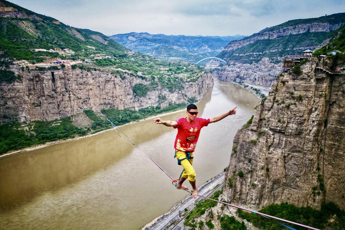 Un atleta chino de slackline estableció el domingo un nuevo récord asiático al caminar en slackline sobre el río Amarillo en la provincia de Shanxi, en el norte de China.…