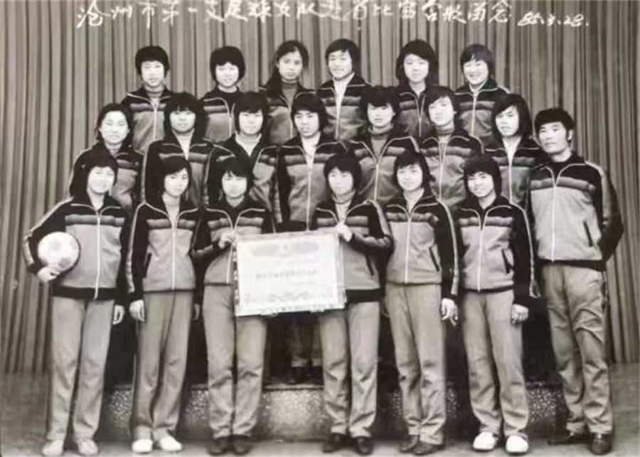 Miembros del primer equipo de fútbol femenino de Cangzhou, provincia de Hebei, durante los VII Juegos Provinciales, Hebei, a?o 1985.…