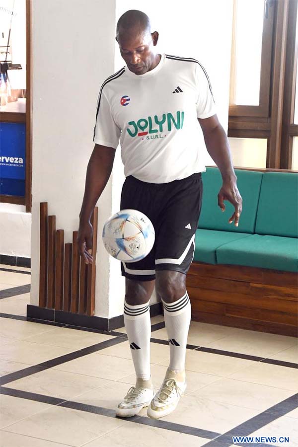 Imagen del 6 de abril de 2024 del exfutbolista cubano Erick Hernández, dominando un balón en el aire, en La Habana, capital de Cuba.…