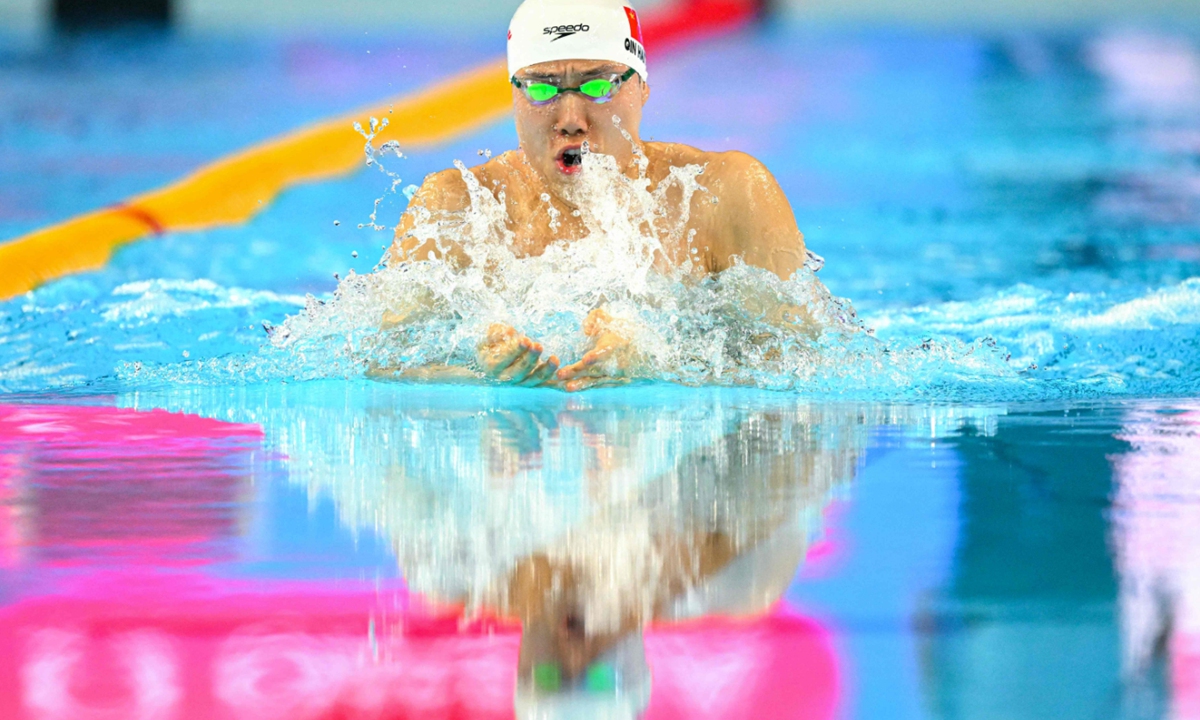 El nadador chino Qin Haiyang compite en la final de los 100 m braza masculinos durante el Campeonato Mundial de Natación 2025 en Singapur el 28 de julio de 2025.…