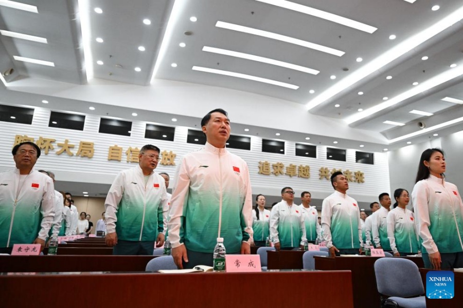 Imagen del 29 de julio de 2025 de la ceremonia de presentación de la delegación china para los próximos Juegos Mundiales de 2025 en Chengdu, en Beijing, capital de China.…
