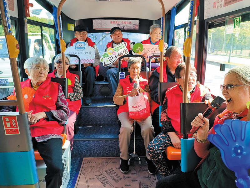 Los residentes mayores disfrutan del servicio Bus Neighbor en Wuxi, provincia de Jiangsu.…