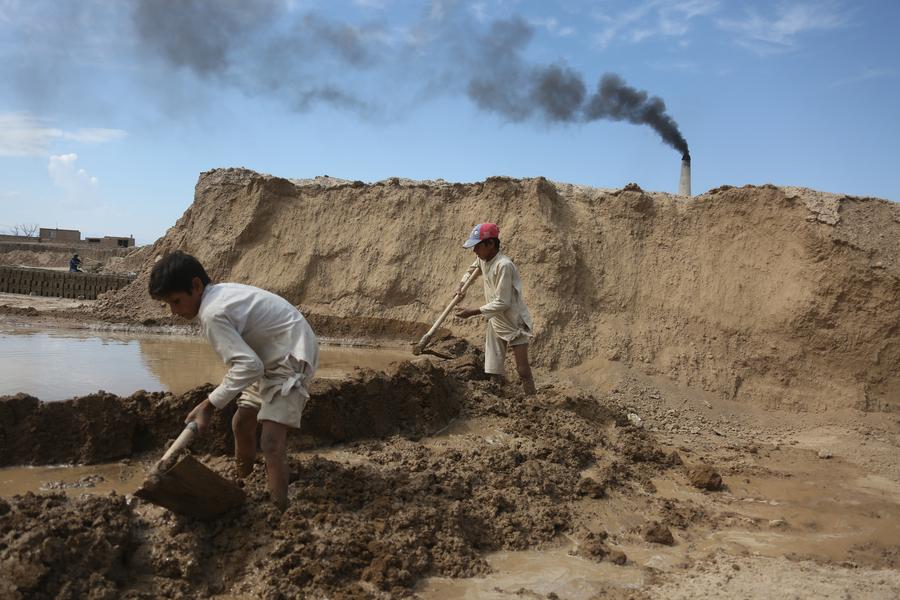 Ni?os trabajan en una fábrica de ladrillos, en Kabul, capital de Afganistán, el 12 de junio de 2024.…