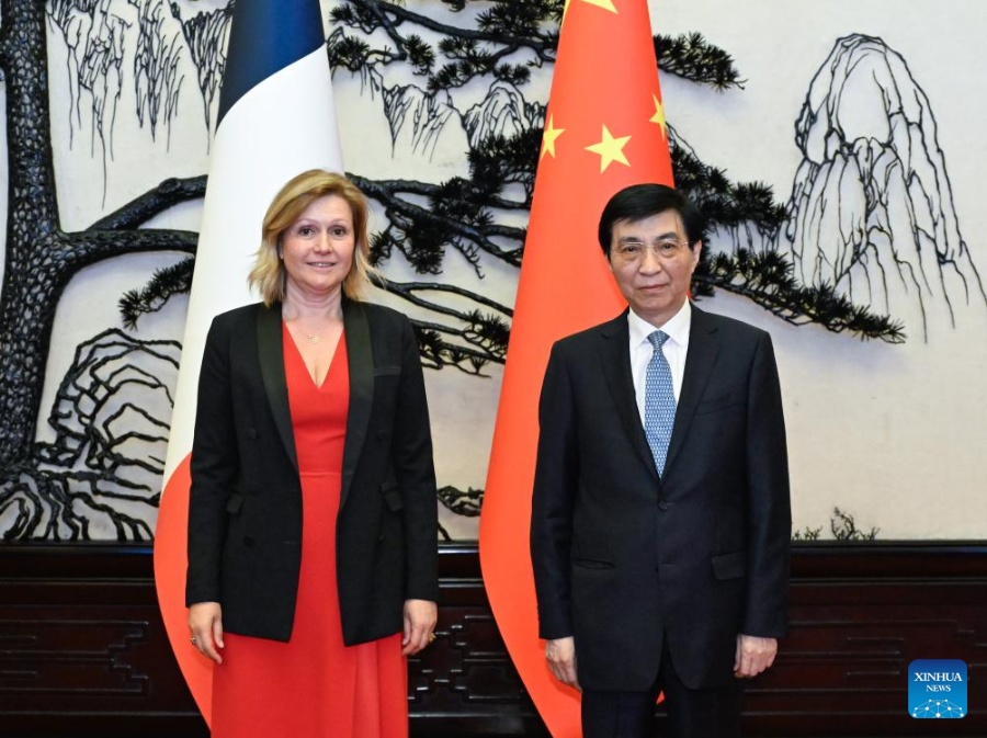 Máximo asesor político chino se reúne con presidenta de Asamblea Nacional de Francia