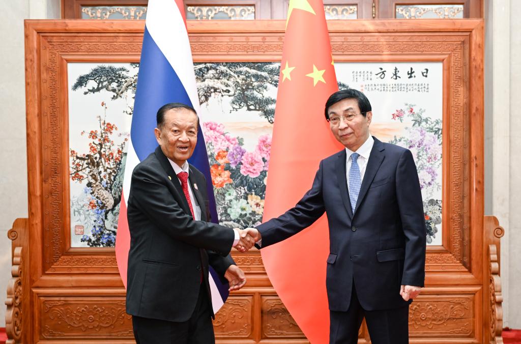 Wang Huning, presidente del Comité Nacional de la Conferencia Consultiva Política del Pueblo Chino (CCPPCh), se reúne con el presidente de la Asamblea Nacional y presidente de la Cámara de Representantes de Tailandia, Wan Muhamad Noor Matha, en Beijing, capital de China, el 22 de junio de 2025.…