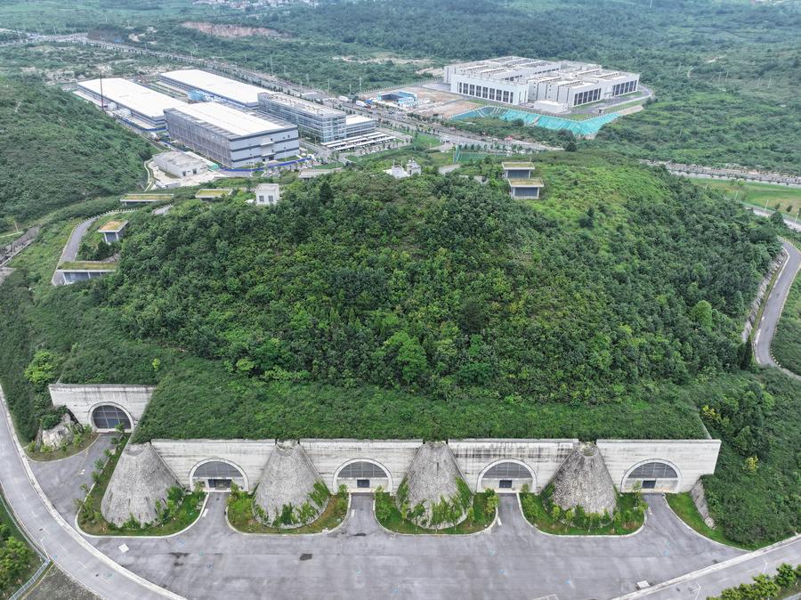 La foto, tomada el 29 de agosto de 2024 con un dron, muestra un centro de datos de Tencent en la Nueva área de Gui'an, en la provincia suroccidental china de Guizhou.…