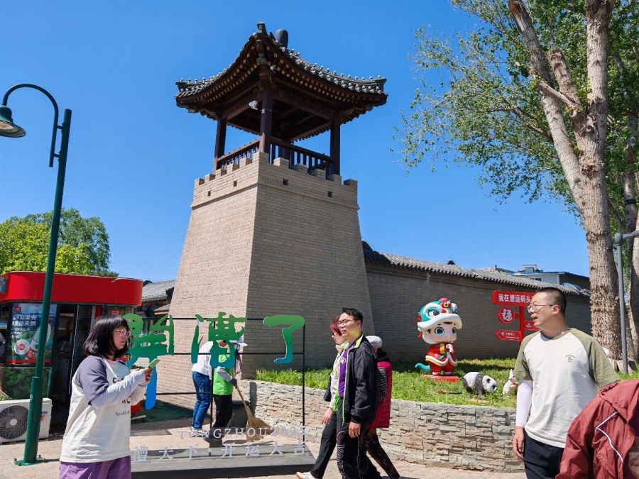 Foto tomada el 4 de mayo muestra a turistas visitando el muelle Caoyun en Tongzhou.…