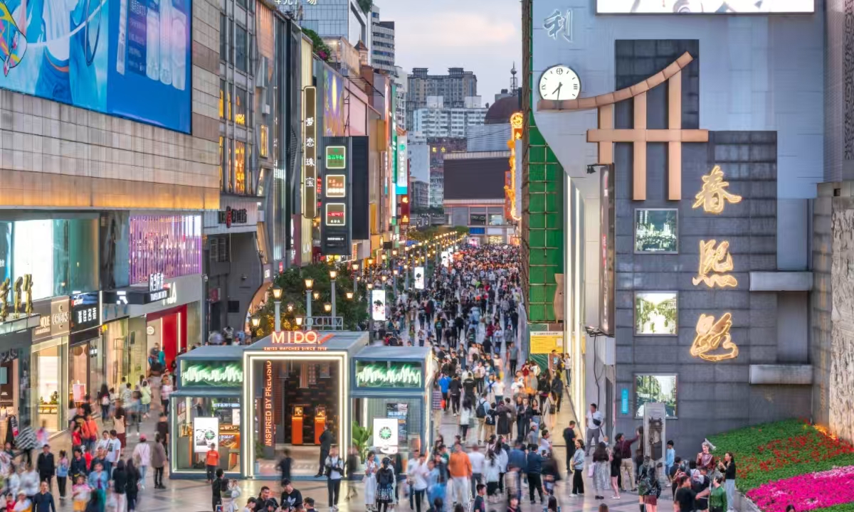 Calle Chunxi, zona popular y comercial de Chengdu, provincia de Sichuan.…