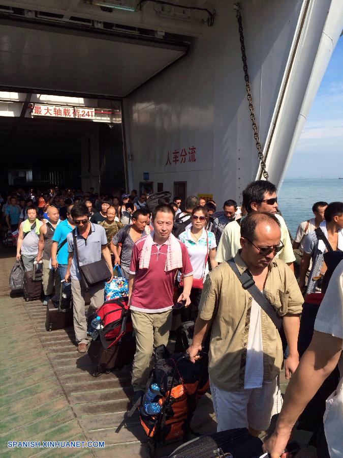 HAIKOU, 20 may (Xinhua) -- El primer grupo de trabajadores chinos afectados por los incidentes de violencia ocurridos en Vietnam llegaron hoy martes por la ma?ana a un puerto de Haikou, capital de la provincia insular china de Hainan.