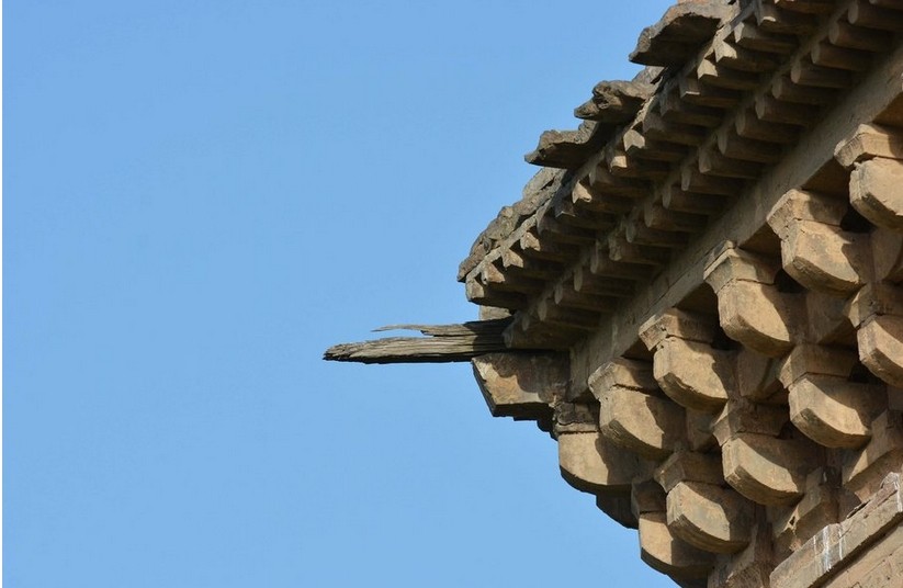 Un palo de madera que sobresale de cada esquina de la torre octogonal solía servir para colgar las campanas, en Luoyang, provincia de Henan, el 20 de mayo. [Foto/CFP]