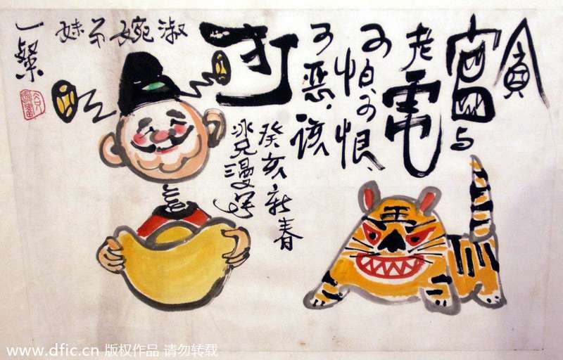Un cómic de Liao Bingxiong titulado "Oficial corrupto y tigre". [Foto/IC]