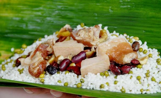 Los ingredientes del relleno de un Zongzi al estilo de Guangxi. [Foto / IC]
