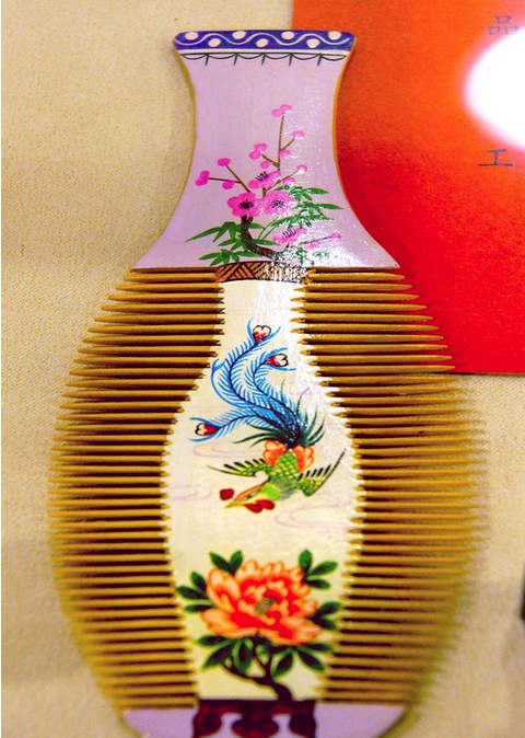 Un peine de Changzhou, provincia de Jiangsu. Los mejores peines chinos están en Changzhou, conocida como la "Casa de los peines", en la provincia de Jiangsu. Son conocidos por su textura firme, artesanía fina y gran variedad. La industria del peine apareció en la dinastía Jin (AD265-420) y cada a?o millones peines se exportaron a todo el mundo. [Foto/IC]