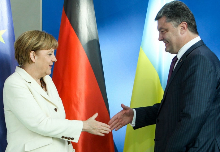 BERLIN, 5 jun (Xinhua) -- La canciller alemana, Angela Merkel, se reunió hoy con el presidente electo de Ucrania, Petro Poroshenko, y prometió apoyar el futuro desarrollo de Ucrania.