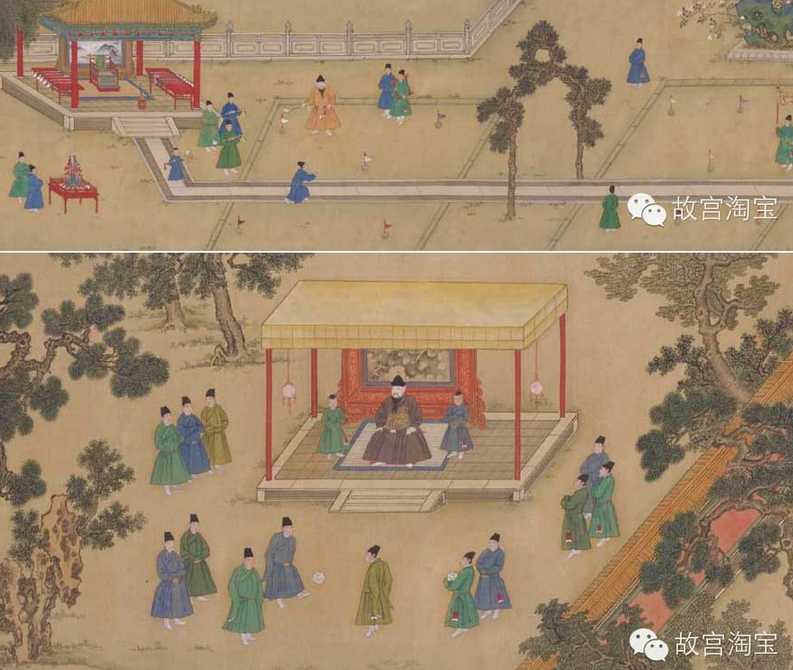 La pintura muestra al emperador Xuanzong de la dinastía Ming observando y participando en un partido de cuju. [Foto/Museo Palacio]