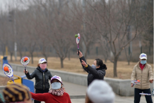 La gente hace ejercicios en un parque de Pekín en un día contaminado, el 23 de febrero de 2014. [Foto/IC]