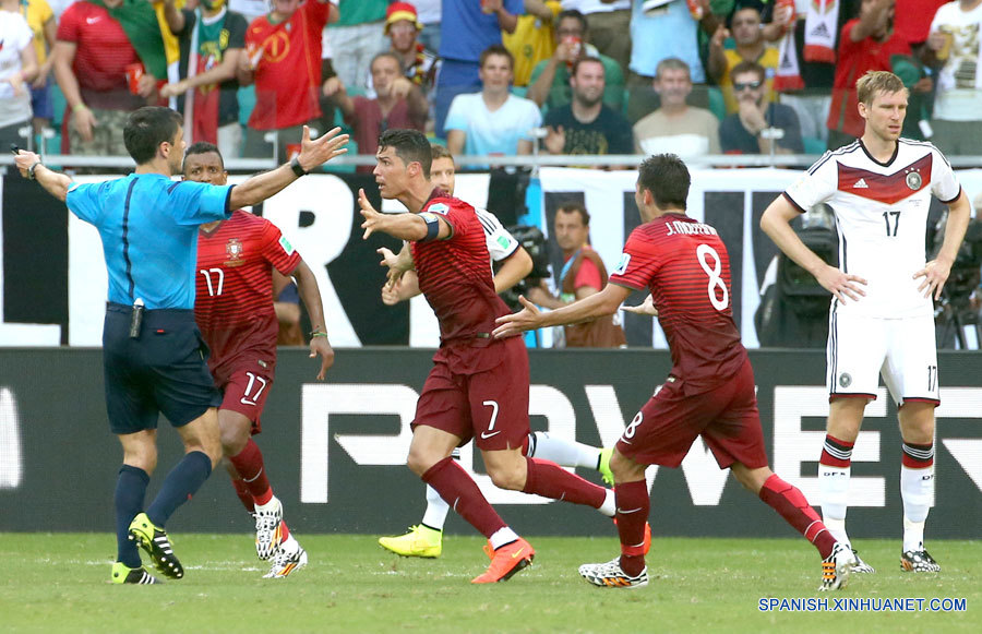 El temperamental Pepe trajo más problemas a Portugal. Pepe pegó a Muller en la cara con la mano cuando ambos perseguían la pelota. Muller cayó y Pepe creyó que el alemán estaba fingiendo. Pepe caminó directo hacia Muller, se inclinó y le dio un cabezazo a Muller, quien estaba sentado en el campo.