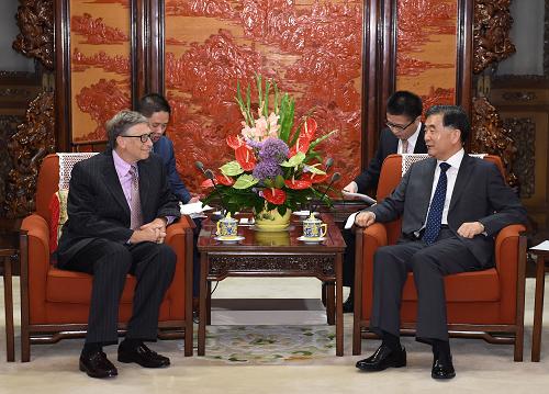 BEIJING, 17 jun (Xinhua) -- El viceprimer ministro de China Wang Yang se reunió hoy con Bill Gates, presidente conjunto de la Fundación Bill & Melinda Gates.