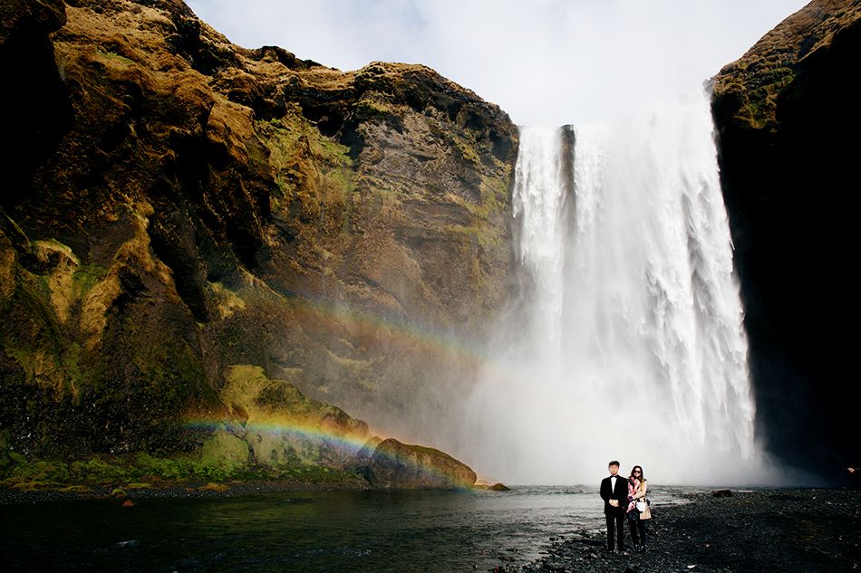 Yang y su "Padre" en frente de la Skogafoss en Islandia.