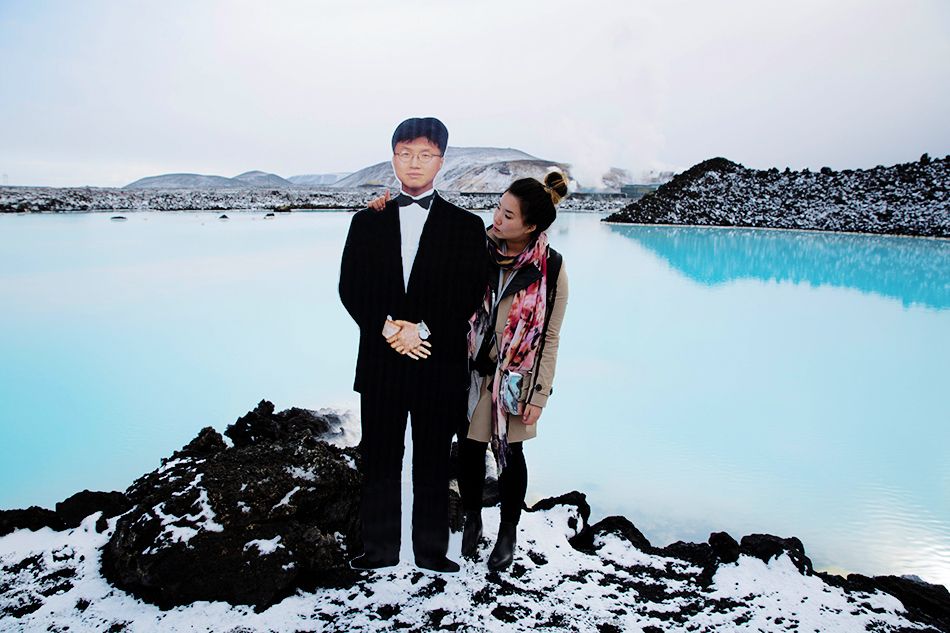 Yang y su "Padre" en frente de la Laguna Azul en Islandia.
