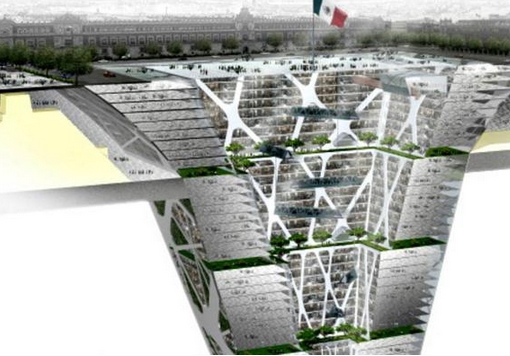 Y existe un proyecto para edificar un complejo de 65 pisos subterráneos que albergue oficinas, viviendas y negocios bajo la emblemática plaza central de la ciudad, el Zócalo.