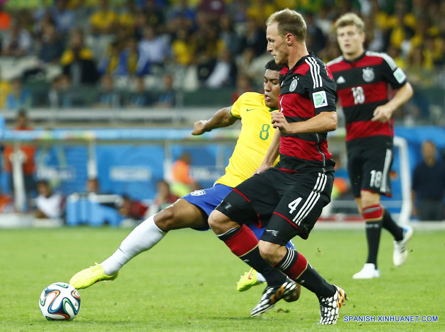 Los anfitriones regresaron de la pausa con dos alteraciones: Paulinho y Ramires, en lugar de Fernandinho y Hulk, y con una actuación mejor buscando al menos recortar las distancias y disminuir la diferencia de la derrota. Sin embargo, desperdiciaron tres oportunidades en los ocho primeros minutos, dos de ellas gracias a buenas defensas de Neuer.