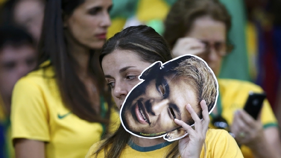 Neymar, la estrella del equipo, no pudo jugar debido a una fractura de vértebra. Aficionados portaban máscaras del jugador.