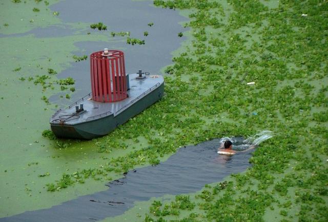 El Río Han de Wuhan se convierte en un "prado" debido a la proliferación de lentejas de agua (3)