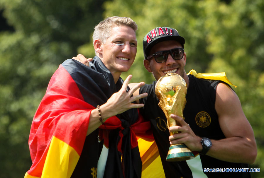 Bastian Scheweinsteiger también quedó sorprendido por los gritos de júbilo en la milla del aficionado de Berlín y dijo que "es increíble el tipo de recibimiento nos da la gente aquí en Berlín".