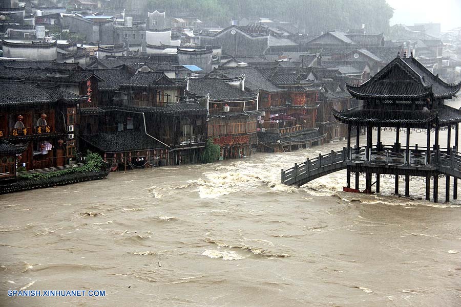 Inundaciones afectan a poblado antiguo y servicio ferroviario en centro de China