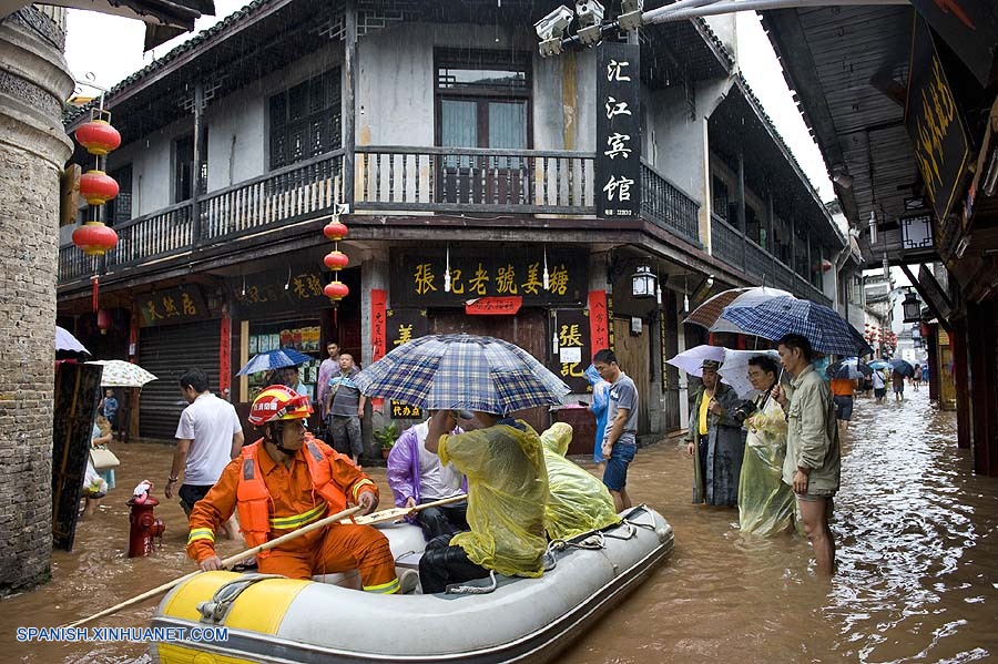 Hasta hoy miércoles por la ma?ana, más de 1.200 efectivos de fuerzas de salvamento estaban ayudando a trasladar a los turistas y residentes desde el antiguo poblado, se?aló un portavoz de la oficina de control de inundaciones y alivio de sequías del distrito de Fenghuang.