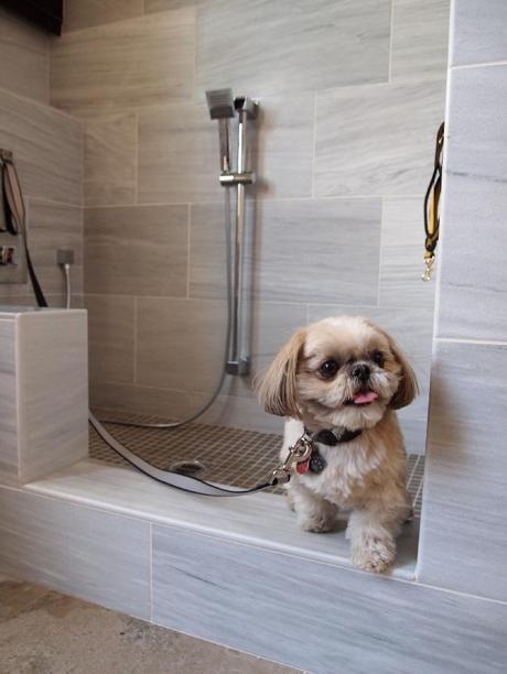 La habitación de la mascota tiene 15 metros cuadrados e incluye ducha equipada con regadera manual y guía para la correa, pisos y muros de azulejo; una estación para agua, dispensadores automáticos de alimentos; una cama enorme; gabinetes para guardar juguetes, premios y comida; una lavadora y secadora apilable; una puerta francesa que abre a un cachorro corriendo y hasta un equipo de televisión con pantalla plana.