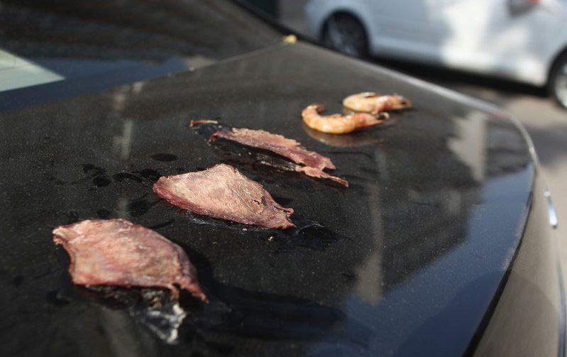 Cocinan carne y gambas crudas en el maletero de un coche, el jueves en Jinan.