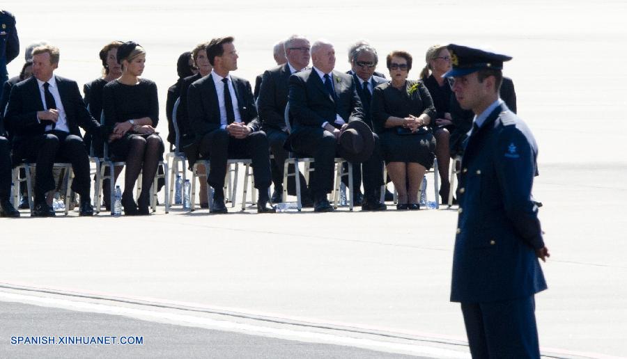 EINDHOVEN, Holanda, 23 jul (Xinhua) -- Dos aviones con los primeros cuerpos de las víctimas del avión malayo que cayó en Ucrania aterrizaron hoy en el Aeropuerto de Eindhoven, en donde fueron recibidos por los familiares de los fallecidos y por miembros de la familia real de Holanda.