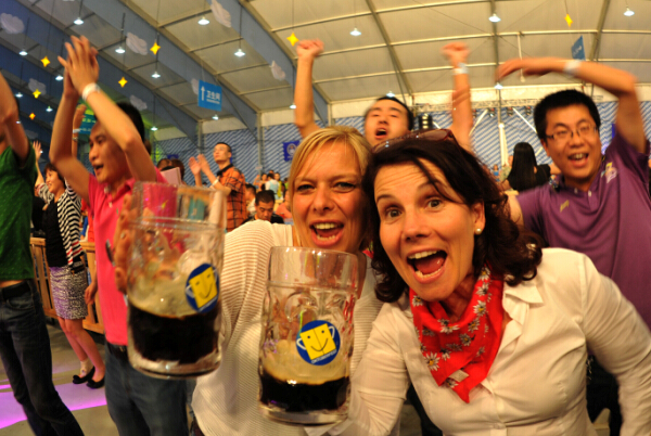 Disfrutando cervezas en el Beerfest Munich de Pekín 2013.