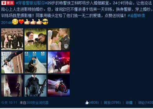 Las fotos fueron publicadas en el micro-blog oficial de la policía SWAT de Chongqing, que causaron un gran furor en internet.