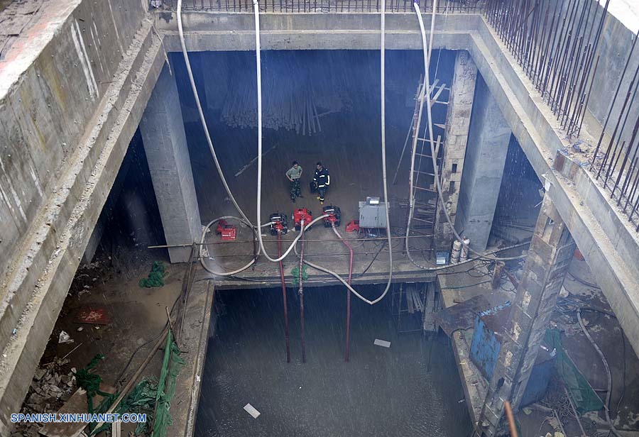 HANGZHOU, 31 jul (Xinhua) -- El metro que está en construcción en Hangzhou, capital de la provincia oriental china de Zhejiang, se inundó hoy jueves.
