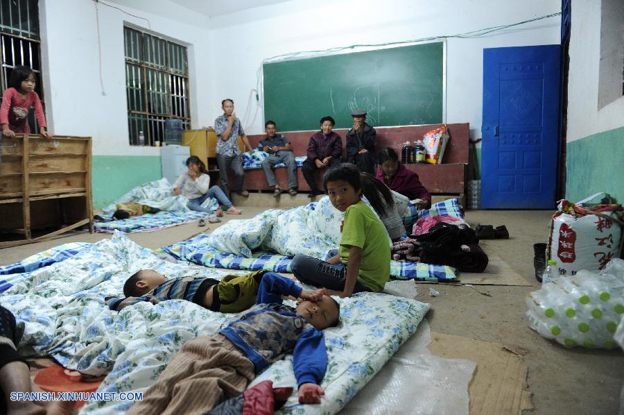 Los socorristas han evacuado a los residentes amenazados por un lago que se formó por el sismo en la aldea de Jiangbian, en la localidad de Zhixiang del distrito de Huize, que inundó 20 casas.
