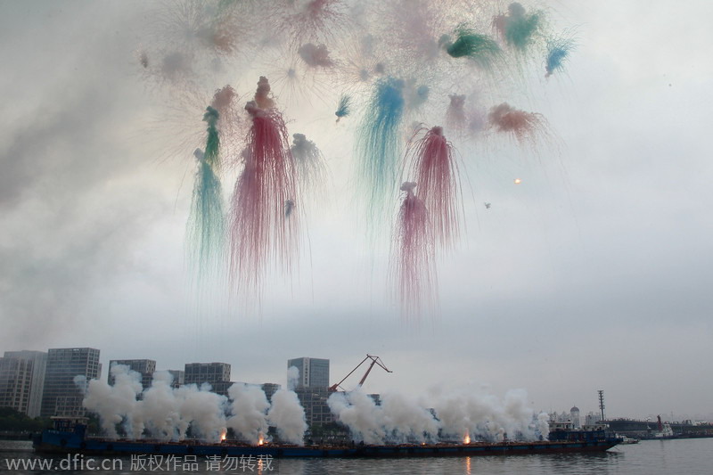 Cai Guoquian exhibe con fuegos artificiales en la ribera del río Huangpuen, en Shanghai. [Foto/IC]
