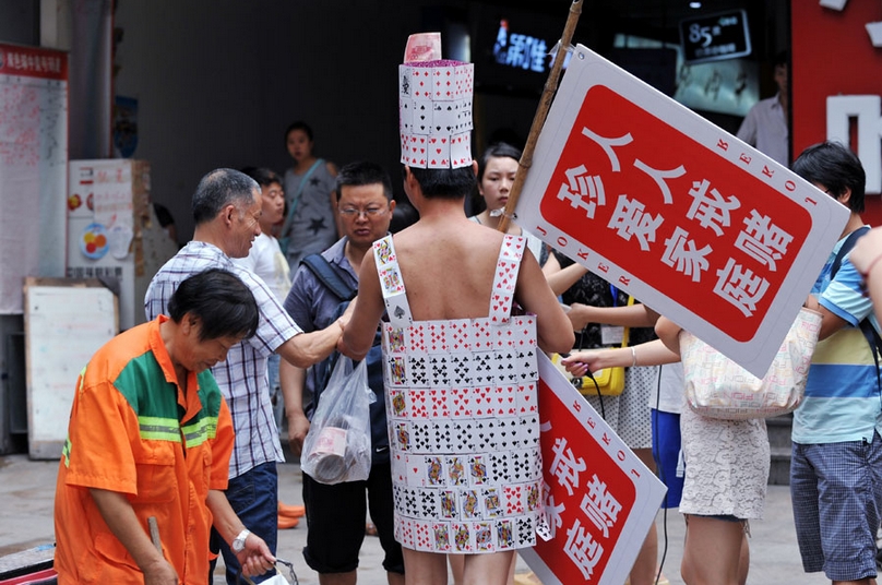 Yuan entrega 100 yuanes a todo aquel que no sea adicto al juego. [Foto/Asianewsphoto]
