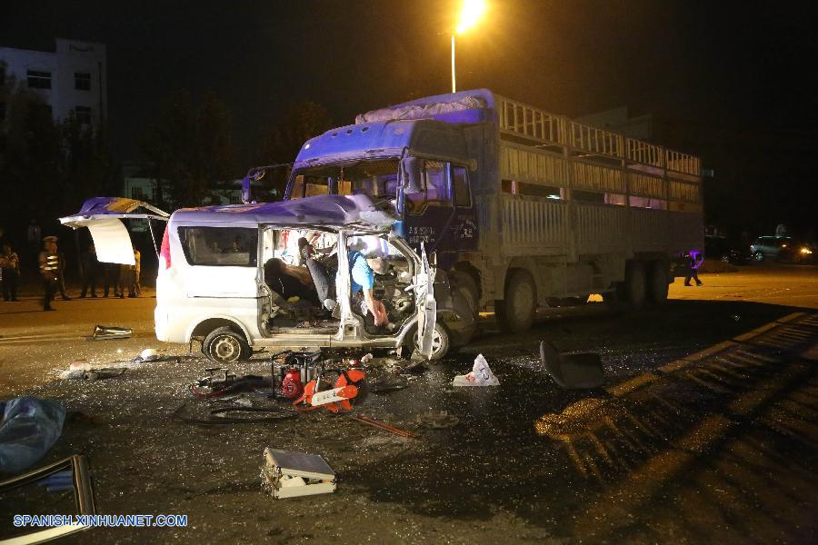 HARBIN, 12 ago (Xinhua) -- Al menos ocho personas murieron cuando una peque?a furgoneta en la que viajaban chocó contra un camión el lunes por la noche en la provincia nororiental china de Heilongjiang, confirmó hoy martes la policía local.
