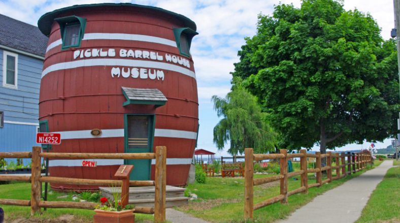 Casa Museo Pickle Barrel: Ubicada en Grand Marais, Michigan, esta extra?a casa con forma de barril fue construida en 1926 como una residencia de veraneo para el dibujante William Donahey. Desde el 2003 se convirtió en un museo sobre su obra.