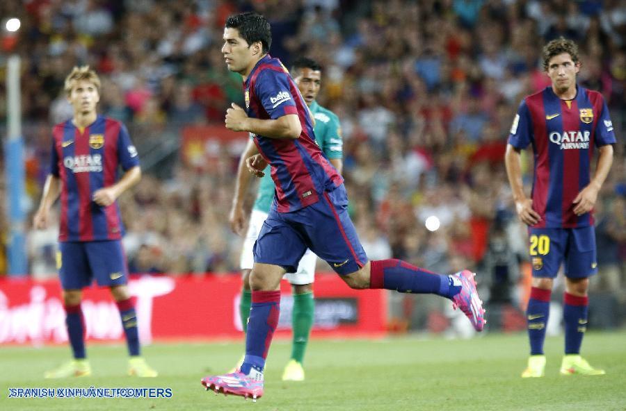 El uruguayo Suárez -sancionado por la Federación Internacional de Fútbol Asociado (FIFA) hasta octubre sin poder jugar partidos oficiales- jugó los últimos quince minutos en la goleada del Barcelona ante un León que opuso poca resistencia.